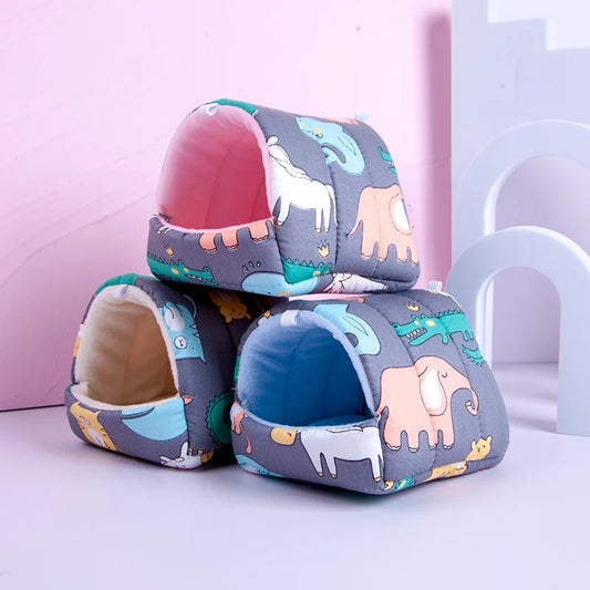 Winter Hamster House Small Animals Warm Mini Cage Chinchilla Rat House Guinea Pig Squirrel Rodent Sleeping Bed Accessories